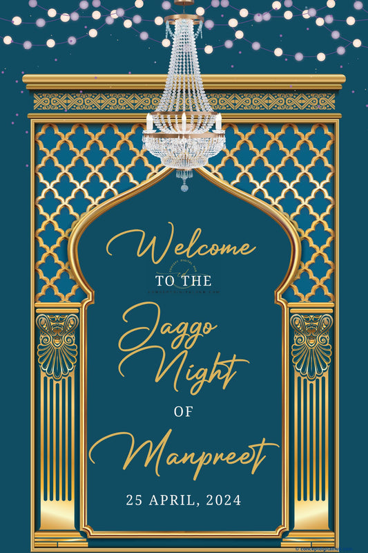 Almond Color Crystal Chandelier Welcome Board for Sangeet