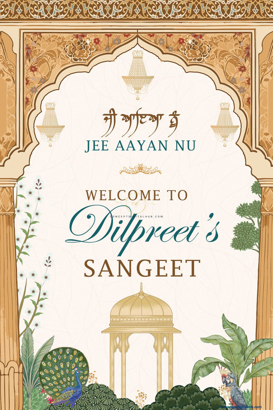 Almond Color Peacock Welcome Board for Sangeet