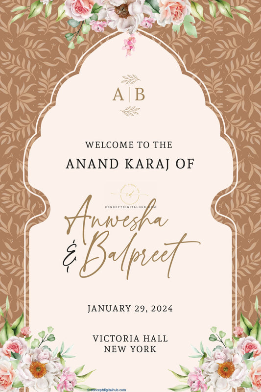 Almond Color Floral Welcome Board for Anand Karaj
