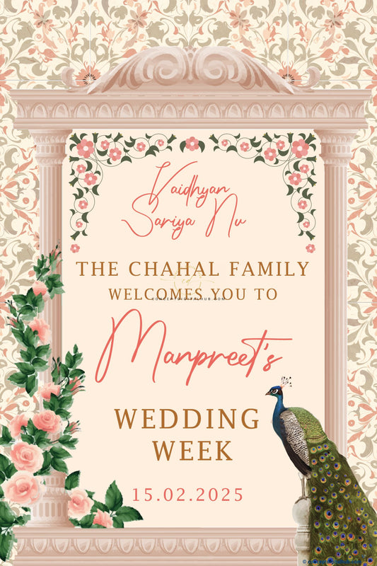 Vanilla Color Peacock Welcome Board for Anand Karaj
