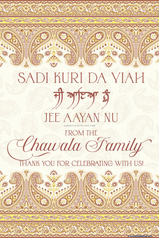 Vanilla Color Paisley Border Welcome Board for Wedding Week