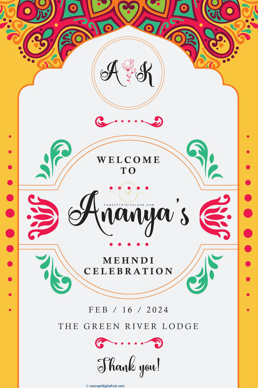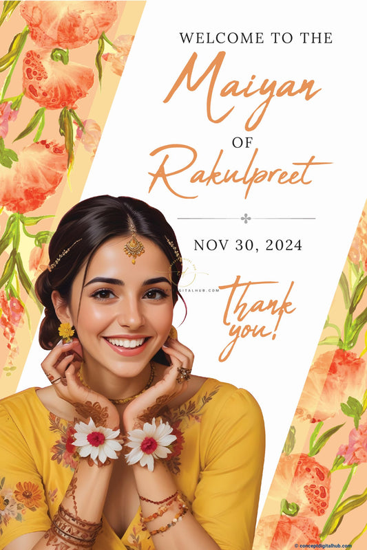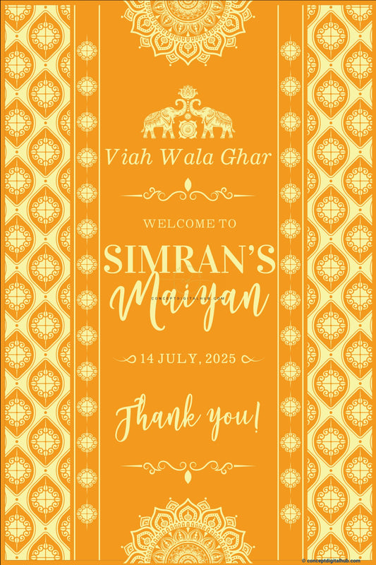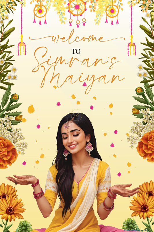 Yellow Colored Maiyan Welcome Sign Board With Flowers