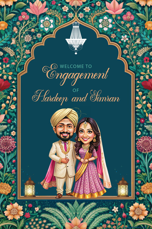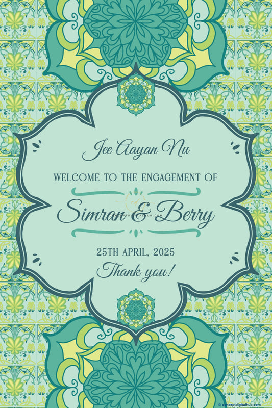 Beetle Green Color Leaf Floral Welcome Board for Engagement