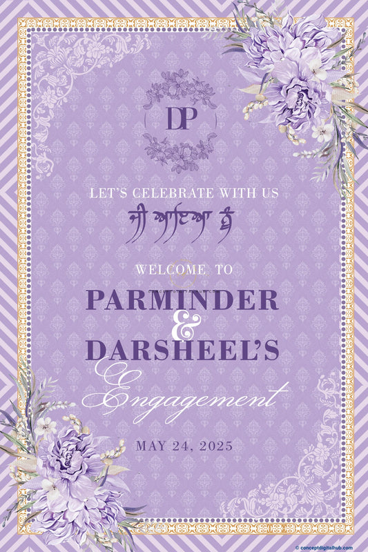 Dawn Pink Color Floral Badge Sign Welcome Board for Egagement