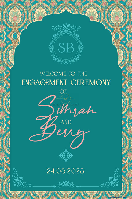 Surfie Green Color Pink Floral Welcome Board for Engagement