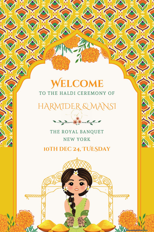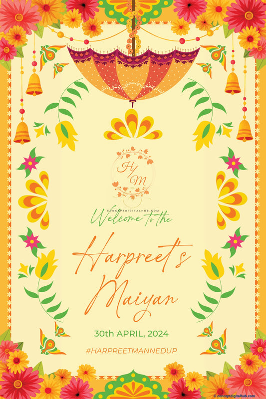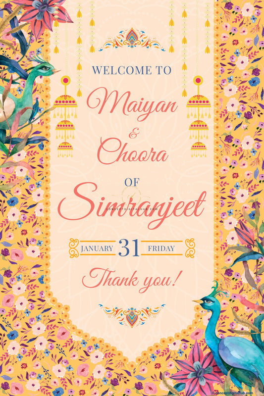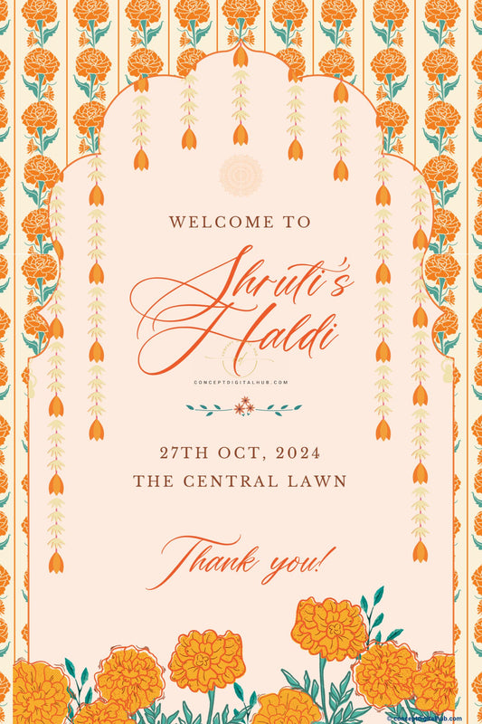 Dull Orange Color Golden Flowers Welcome Board for Maiyan