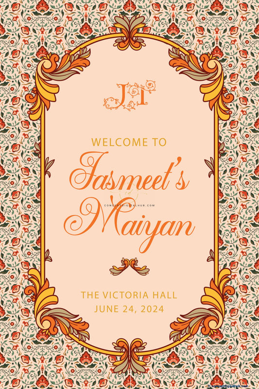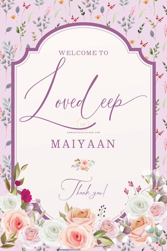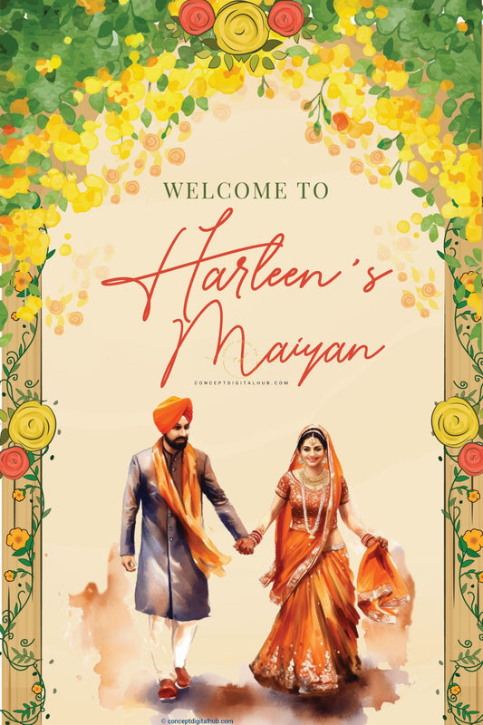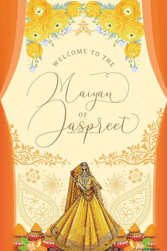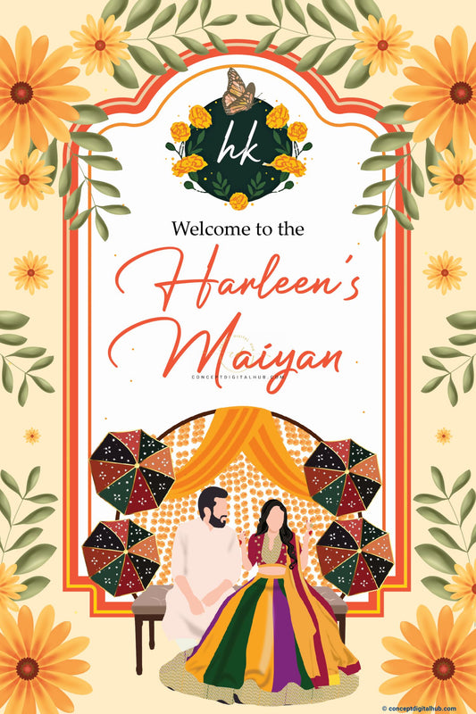 Yellow Colored Maiyan Welcome Sign Board With Flowers
