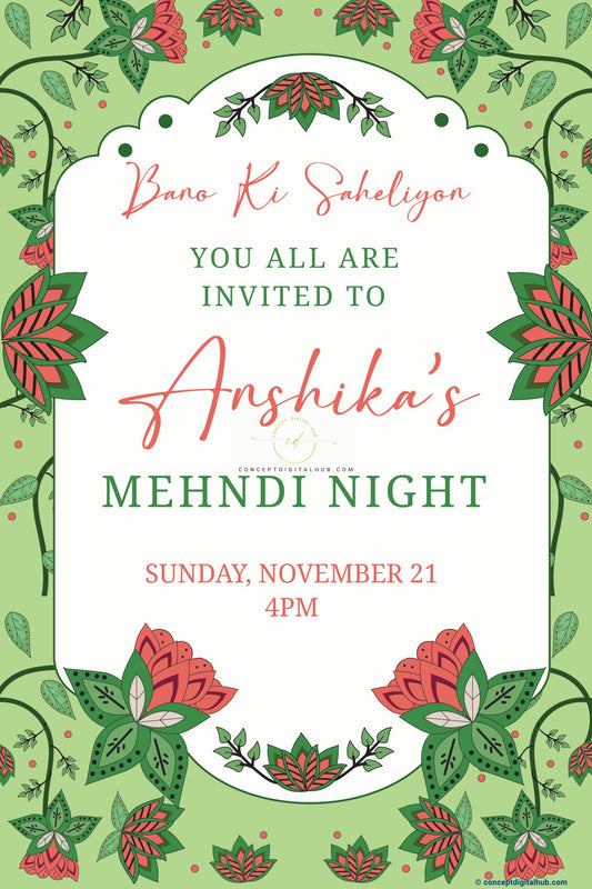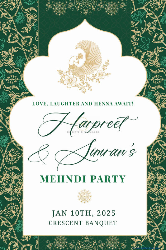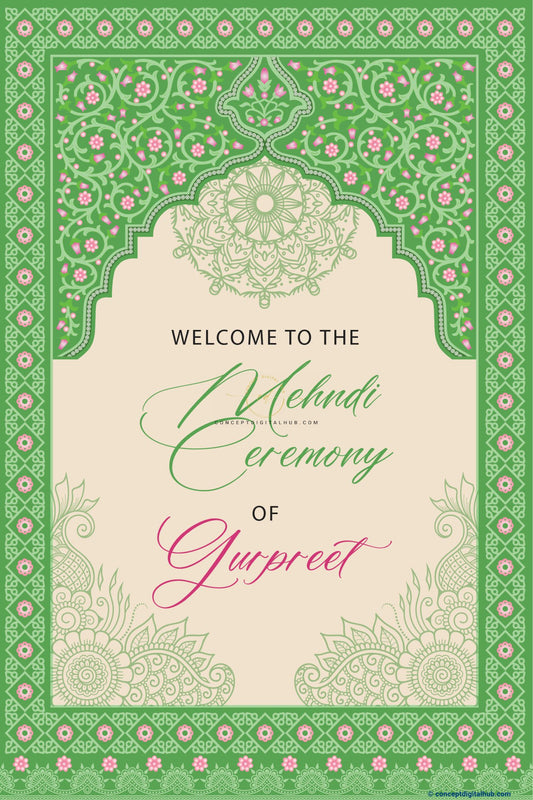 Green Color Gold Floral Pattern Welcome Board for Mehndi