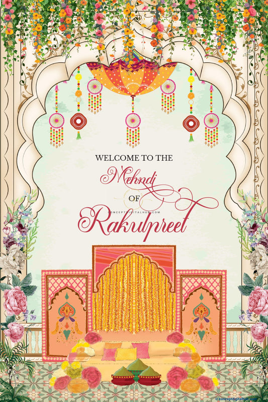 Cream Color Motif Pattern Welcome Board for Mehndi