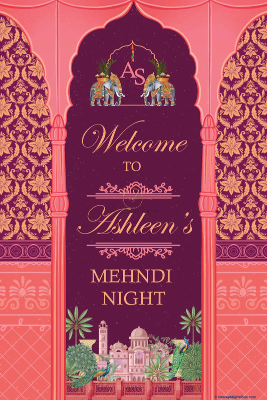 Rosy Pink Color Elephant Welcome Board for Mehndi
