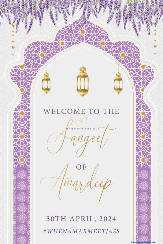 Dusty Purple Color Elephant Sign Welcome Board for Sangeet