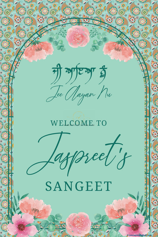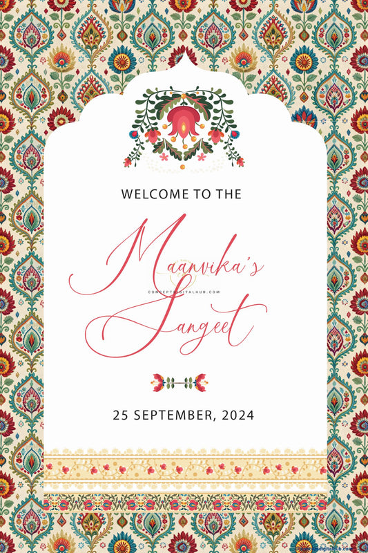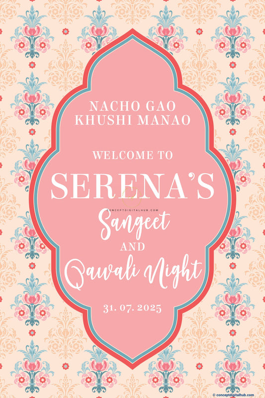 Pink Lemonade Color Paisley Motifs Welcome Board for Sangeet