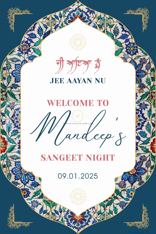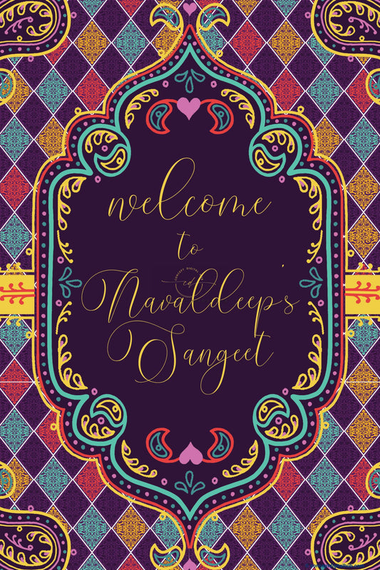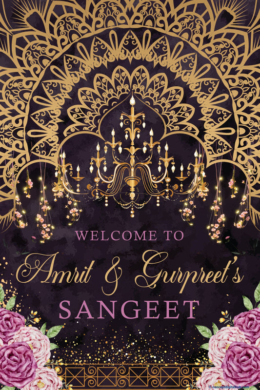 Purple Color Chandelier Welcome Sign Board for Sangeet