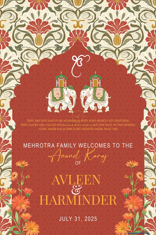 Dull Red Color Elephant Sign Welcome Board for Anand Karaj