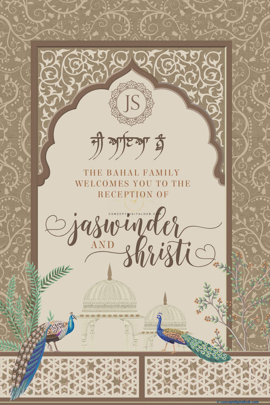 Pastel Brown Color Peacocks Welcome Board for Anand Karaj