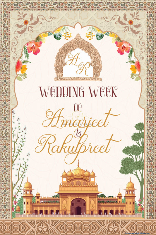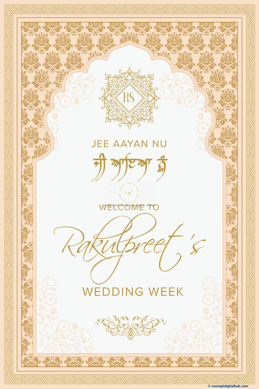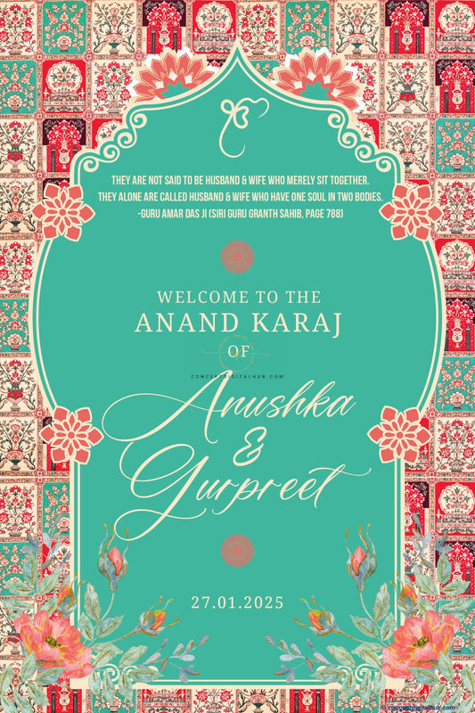Cream Color Floral Border Welcome Board for Anand Karaj