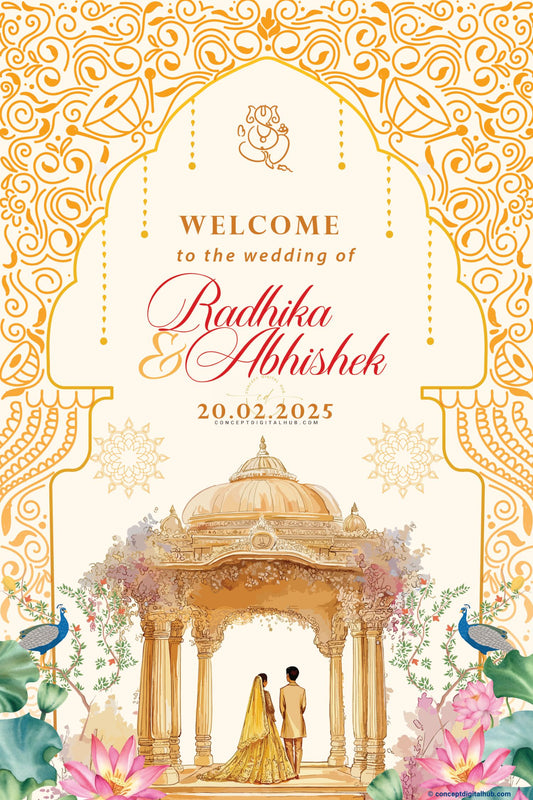 Cheese Colored Peacock Welcome Sign Board for Wedding Week