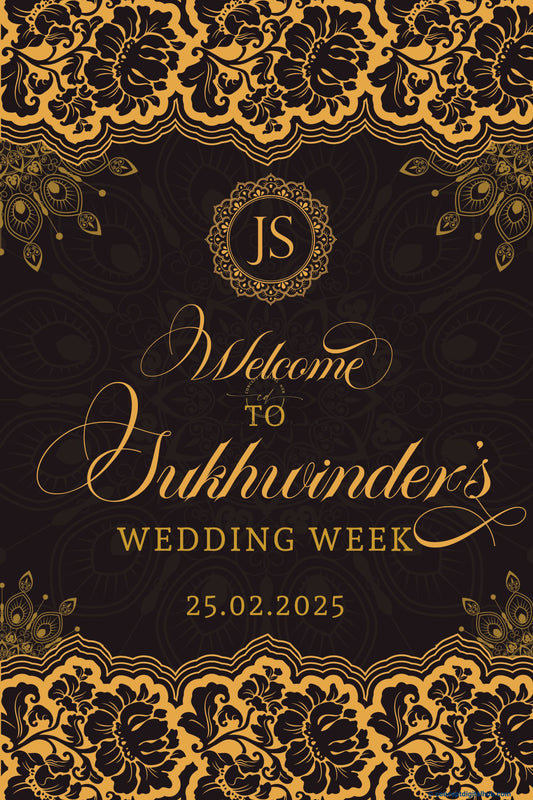 Gold Color Floral Lace Welcome Board for Wedding Week