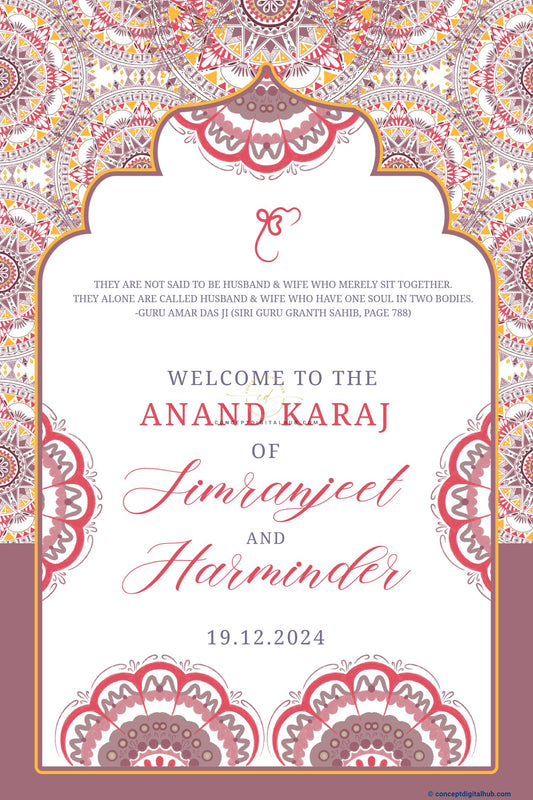 Rosy Brown Color Mandala Welcome Board for Wedding Week