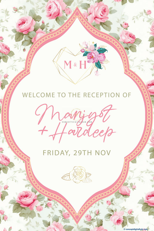 Pink and White Roses Welcome Board for Wedding Week
