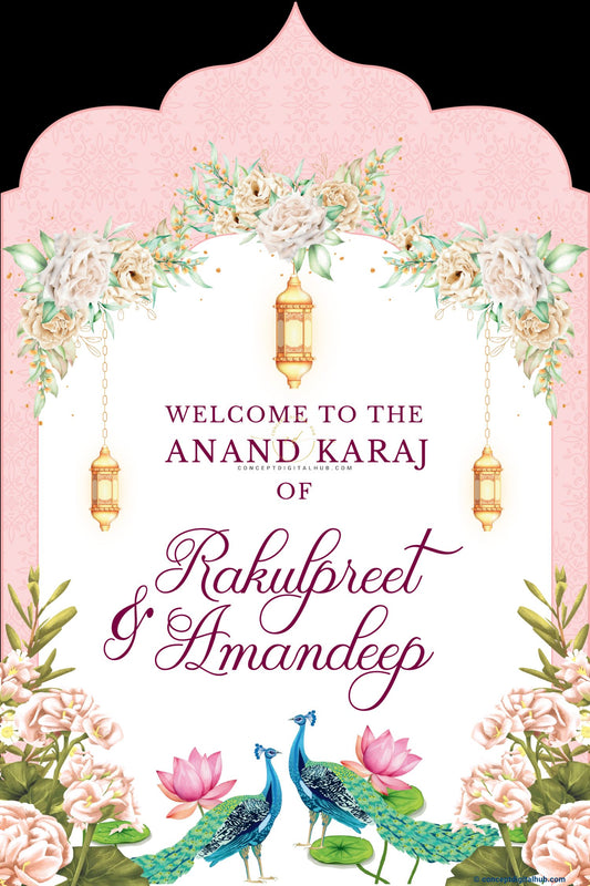Pink Color Floral Peacock Welcome Board for Wedding Week