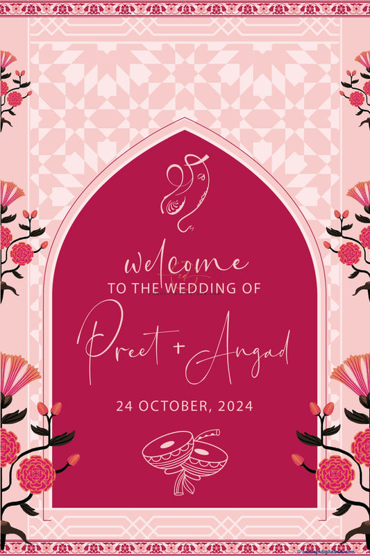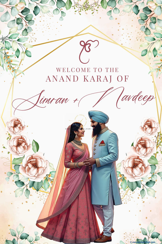 Sikh Wedding Welcome Sign Board for Anand Karaj