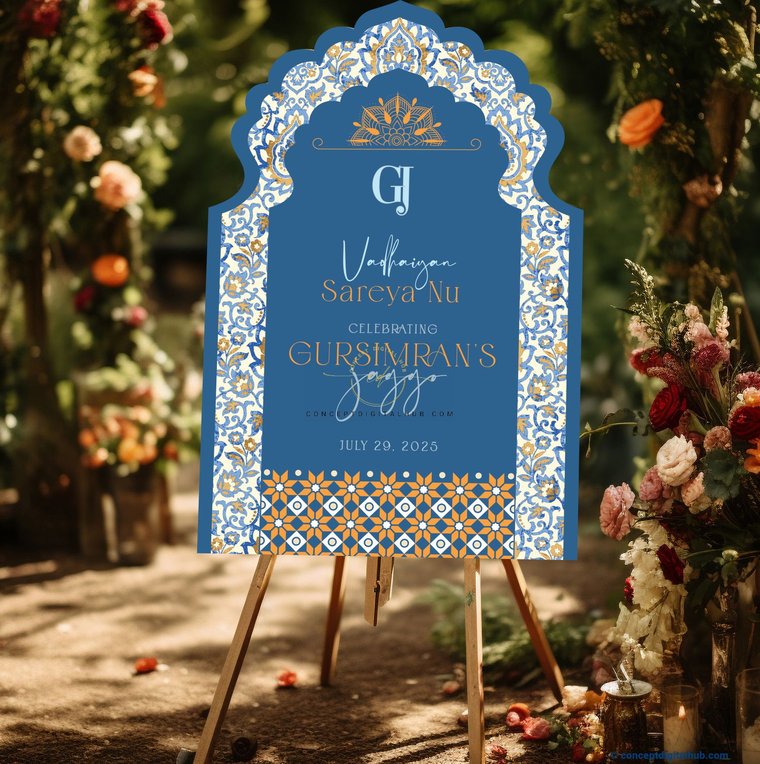 The Denim Color Ornamental Mandala Welcome Board for Jaggo features a rich denim blue base highlighted by intricate ornamental mandala patterns. Designed specifically for Jaggo ceremonies, this board sets a bold yet elegant tone, welcoming guests with a blend of traditional artistry and contemporary style. Its durable construction ensures it remains a striking focal point throughout the celebration, enhancing the vibrant spirit of your event.