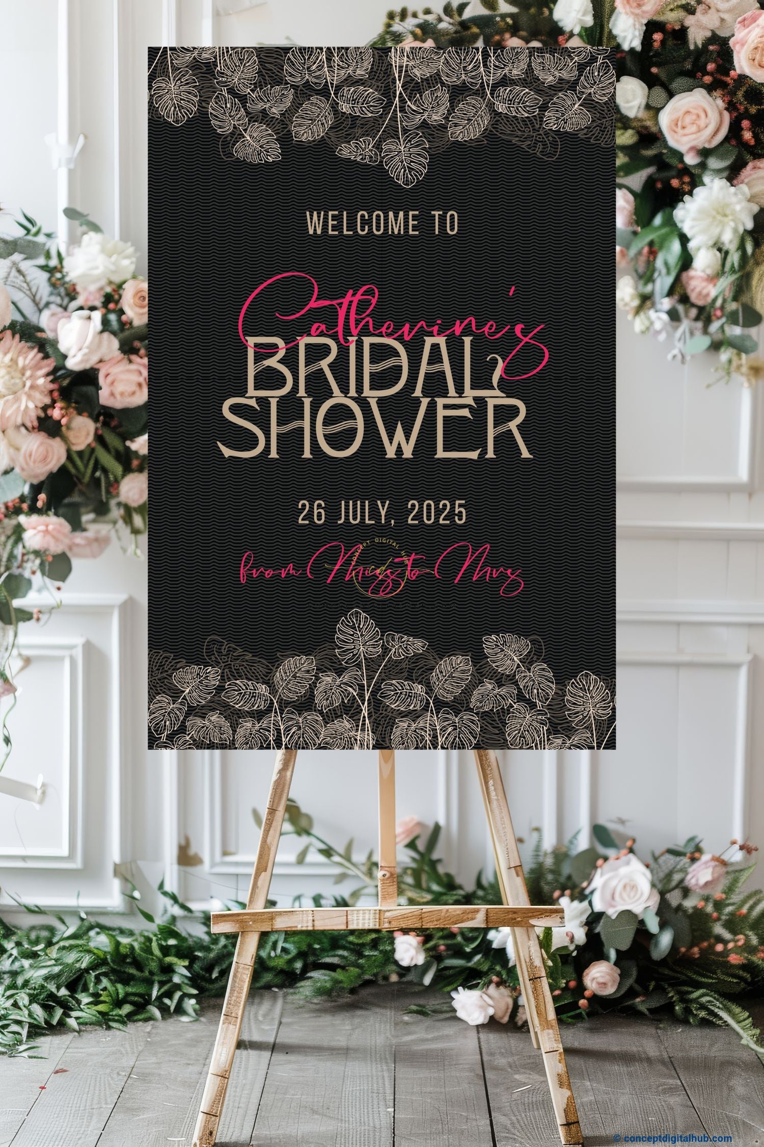 Grey Olive Color Tropical Leaves Welcome Board for Bridal Shower