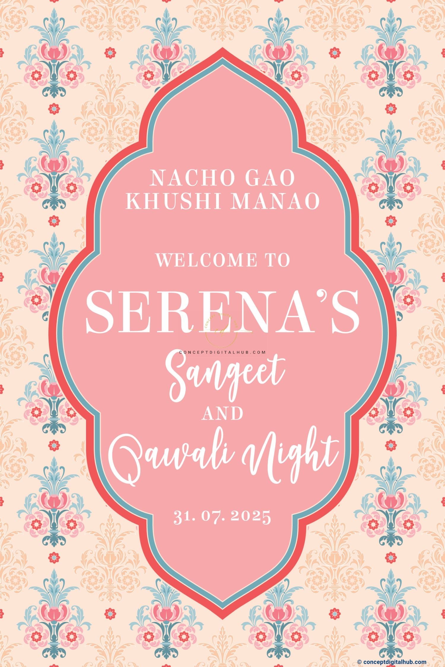 The Misty Rose Color Damask Welcome Board for Sangeet features a soft misty rose background adorned with intricate damask patterns, creating a refined and elegant entrance for your celebration. Designed to complement the vibrant yet graceful ambiance of a Sangeet event, this board offers a stylish and welcoming focal point. Its durable construction ensures it remains a beautiful centerpiece throughout the festivities, enhancing the cultural charm of your special occasion.