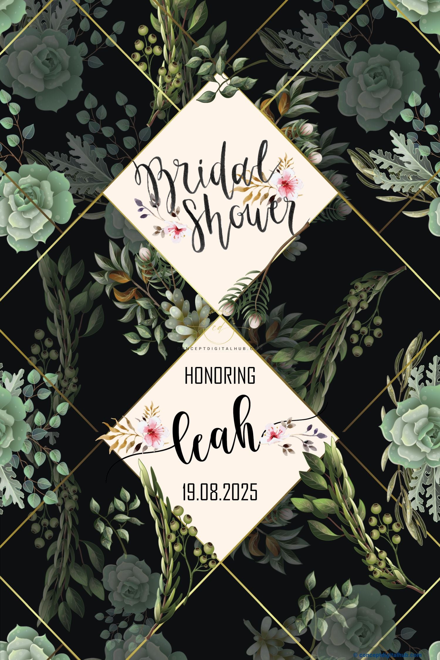 Onyx Color Eucalyptus Leaves Welcome Board for Bridal Shower